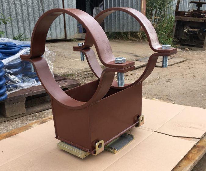 Стандартная опора (на рисунке - КП-А12) предназначена для защиты трубопровода от повреждений в месте сопряжения с опорной конструкцией.
