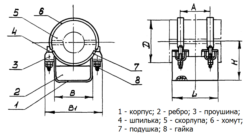 | ОСТ 34.10-618-93 | Опора хомутовая неподвижная | ||